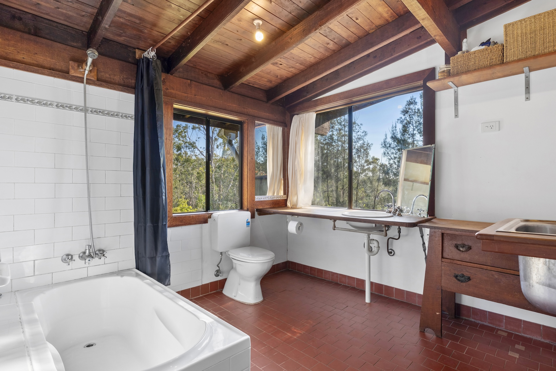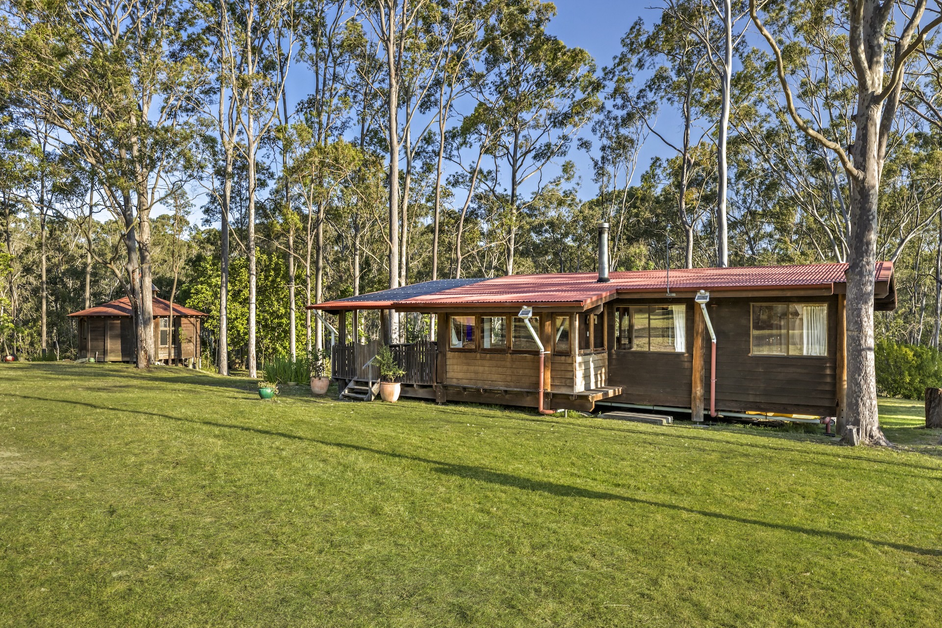 At the heart of this property sits a charming one bedroom Australiana cottage, boasting high raked ceilings and timber floorboards throughout. Every window frames a serene, leafy outlook, inviting the outside in. The open plan living, kitchen, and dining area is warmed by a Nectre slow combustion wood fire, creating a cozy space for all seasons. Step outside to the covered front and rear entertaining decks, perfect for enjoying your morning coffee, or hosting family and friends in a relaxed, natural setting to the soundtrack of nature's birdsong.