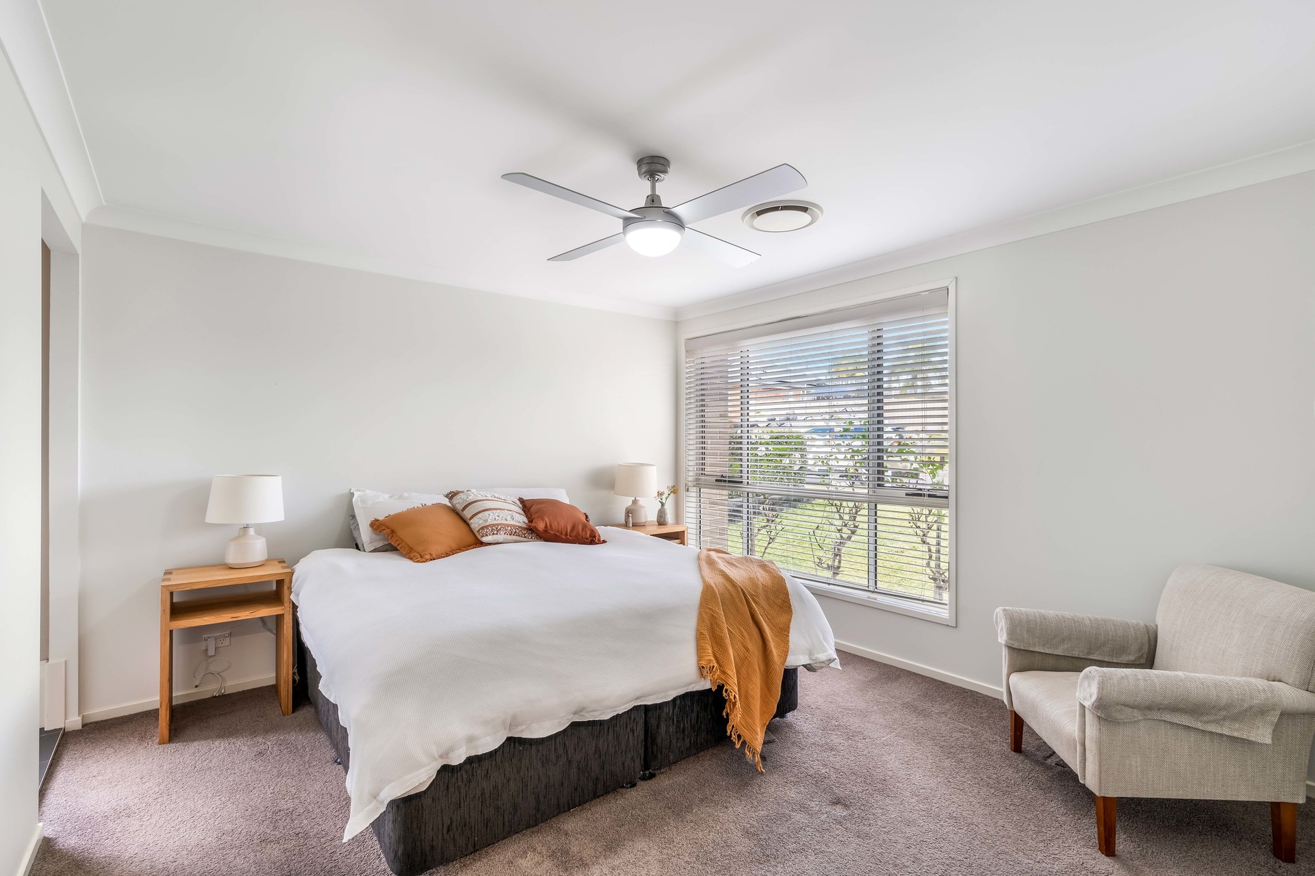 Four well-proportioned bedrooms are fitted with carpets, ceiling fans and built-in robes for optimal comfort and convenience. The master suite features a spacious walk-in wardrobe and a private ensuite. The main bathroom is equally impressive, equipped with a shower, ample vanity storage and a built-in bath, perfect for relaxing soaks.