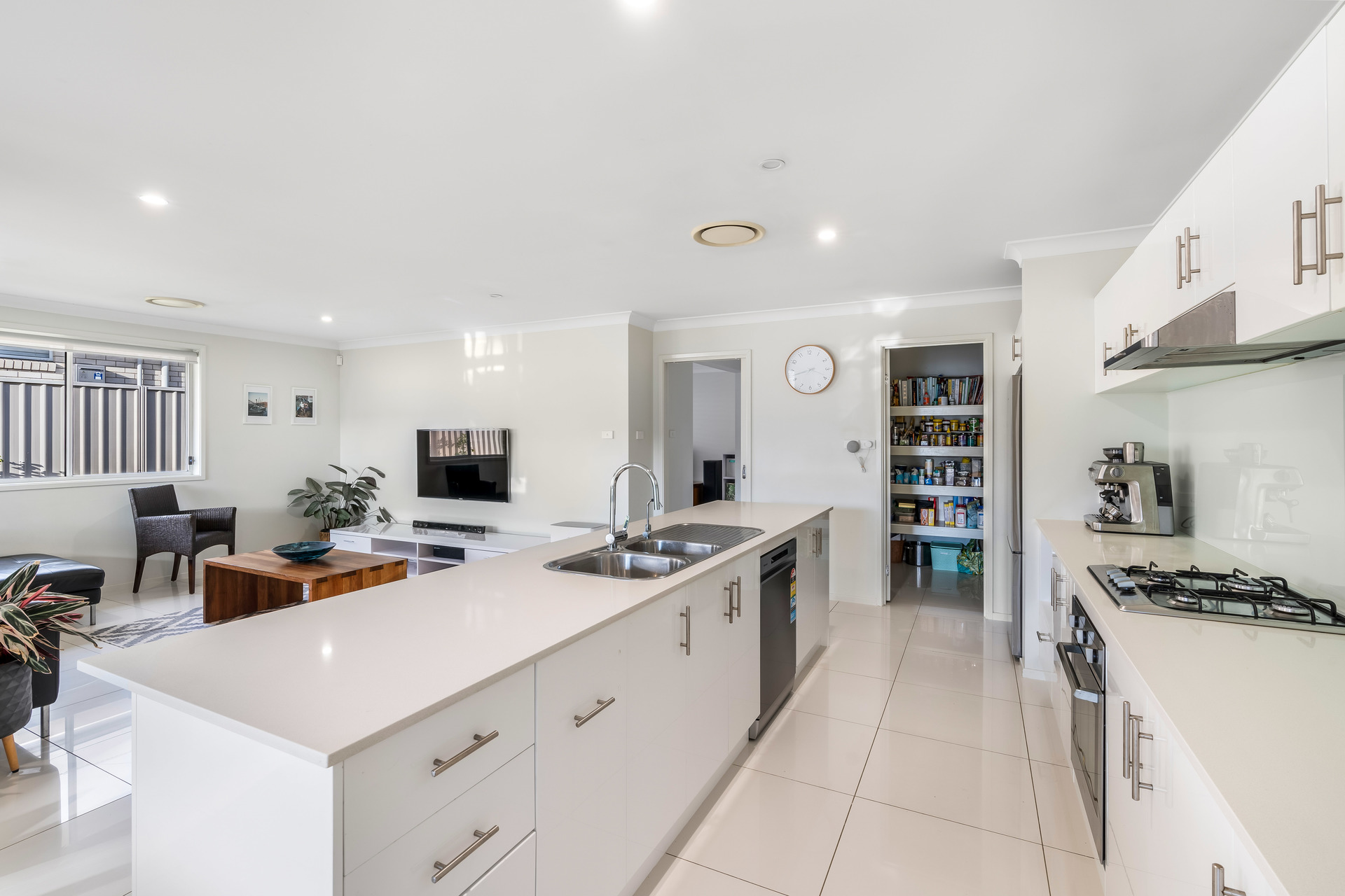 As the heart of the home, the open-plan design integrates the kitchen, dining and additional lounge area, creating a seamless flow for everyday living and entertaining. The galley-style kitchen features stone benchtops, a glass splashback, a large walk-in pantry and stainless steel appliances. This central hub opens effortlessly to the alfresco area through glass sliding doors, inviting natural light and facilitating easy indoor-outdoor living.