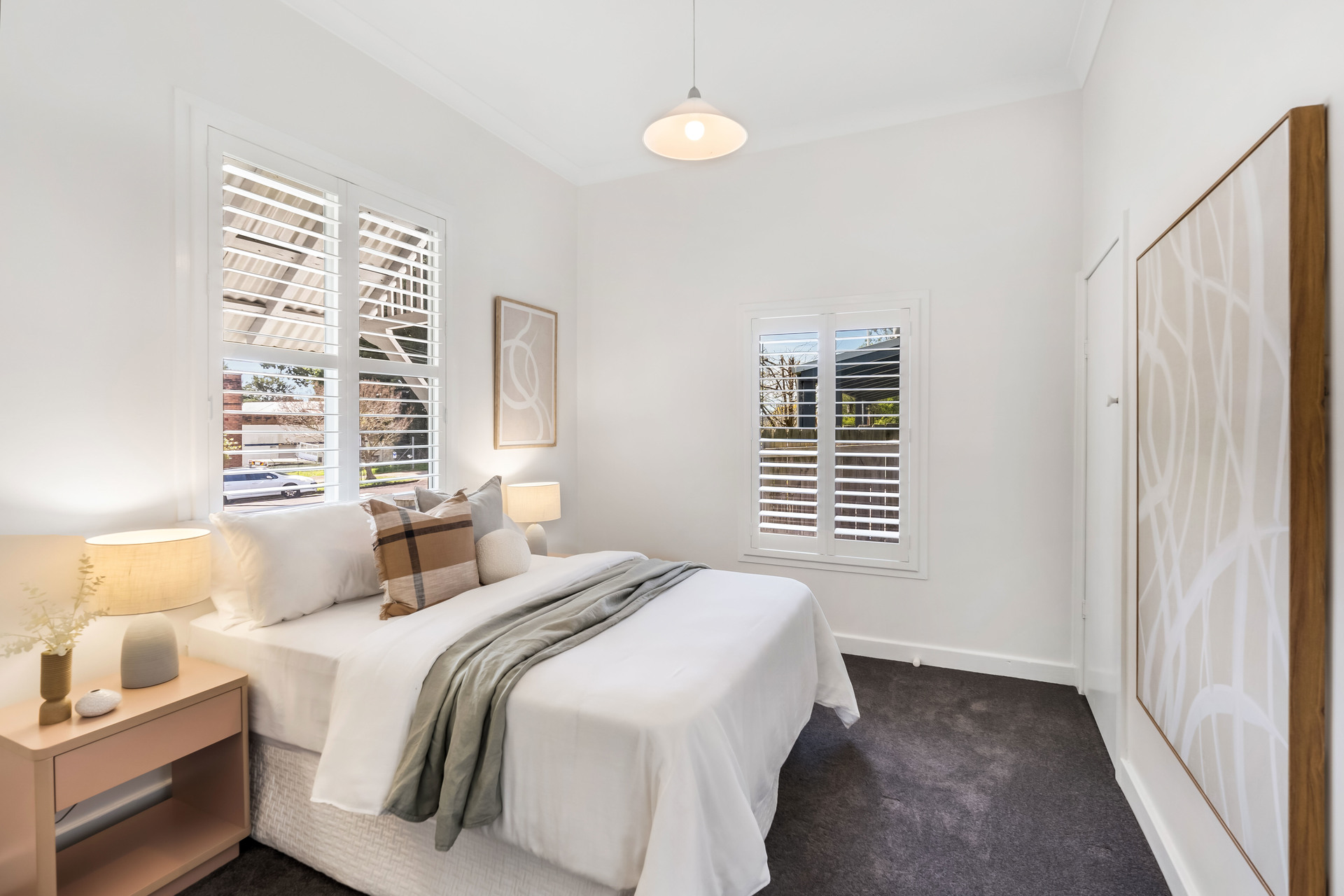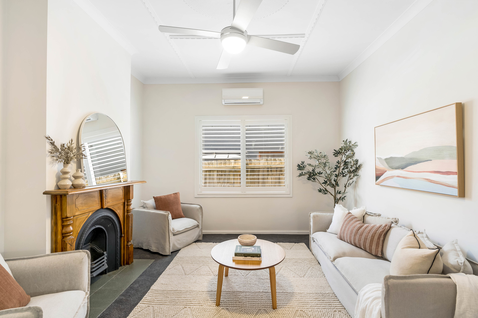 The journey begins at the vibrant front lawn and gardens, leading you to a quaint front porch, the perfect alcove for slow Sunday mornings with a cup of coffee. Inside, the recently repainted interiors pop with a stylish modern colour palette, set against soaring 2.9m ceilings adorned with traditional cornices and decorative ceiling roses.