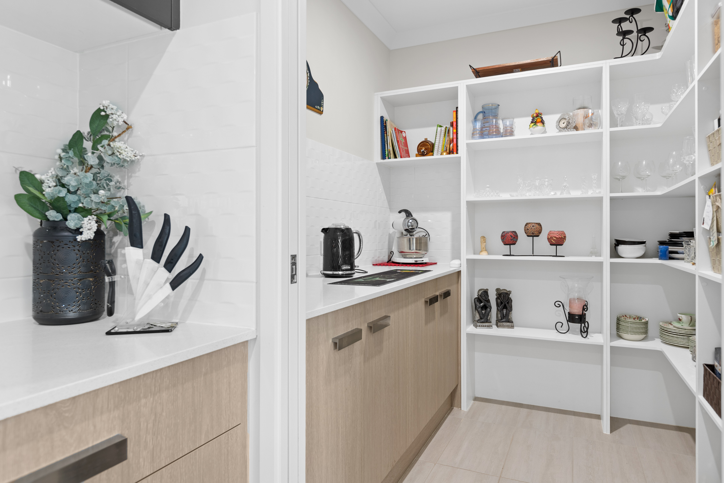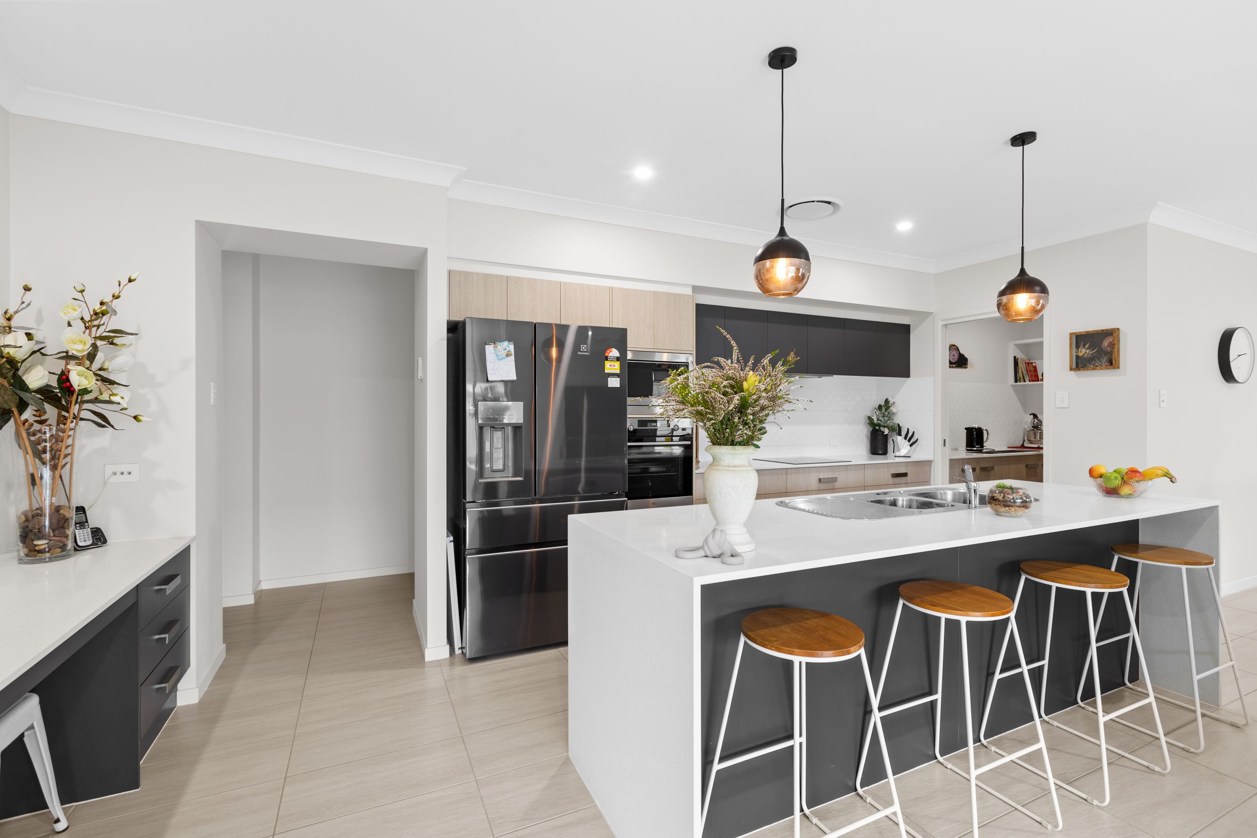 An exquisite kitchen occupies the heart of the home elegantly appointed with a stunning island bench with stone waterfall edges and a butlers pantry that is sure to please the home chef!